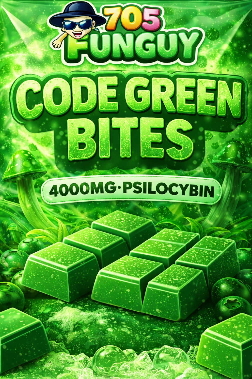 705 Funguy Code Green Bites – 4000mg Psilocybin Chocolate Candy Mushroom Snack